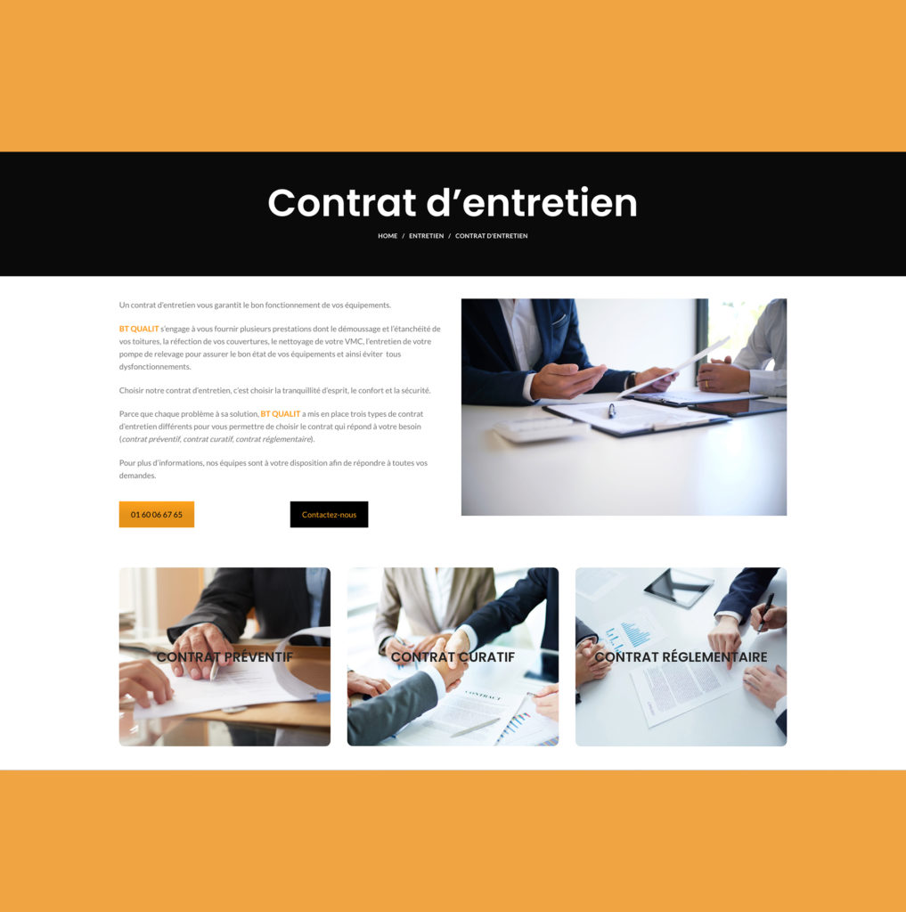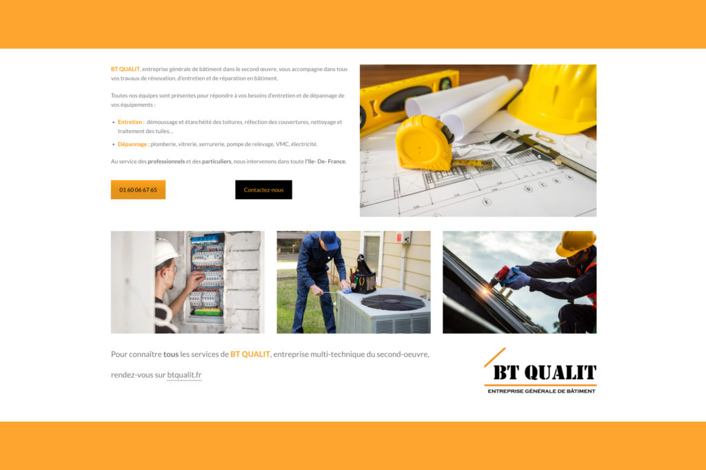 Le projet consistait à créer un site dynamique wordpress en apportant une nouvelle identité visuelle moderne à l’image de BT Qualit.