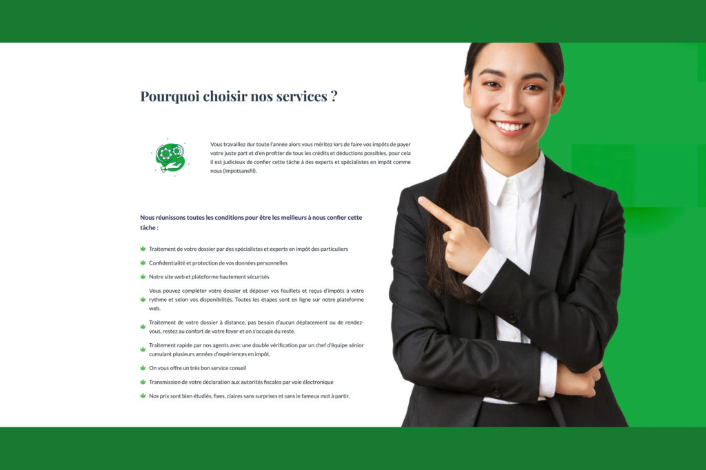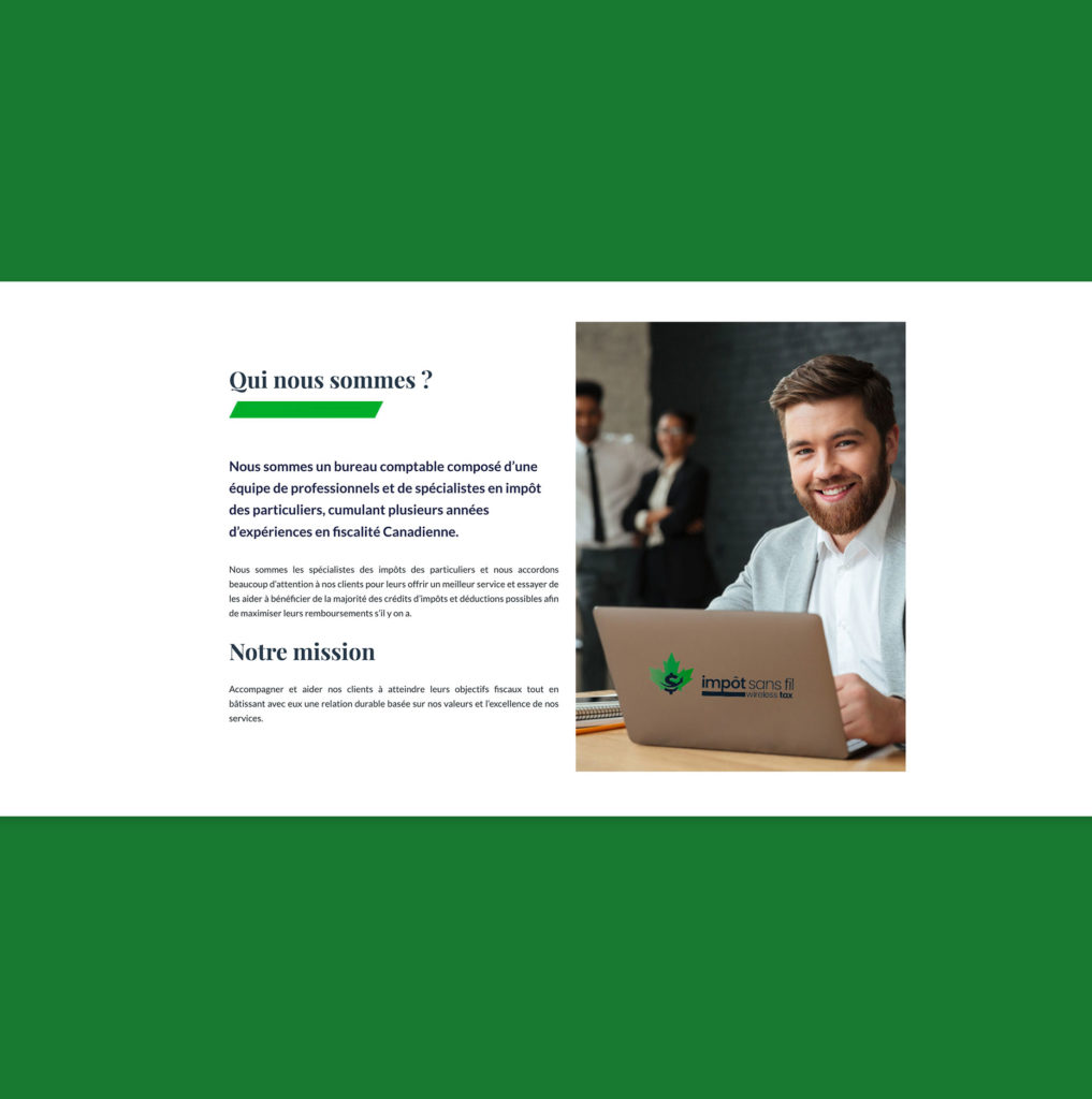 Conception & Création du site internet de Impôt sans fil à Montréal.