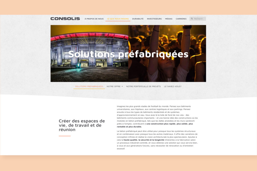 Conception & Création du site web de Consolis à Paris.