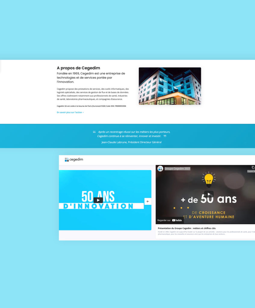 Conception & Création du site corporate de Cegedim en Boulogne-Billancourt.