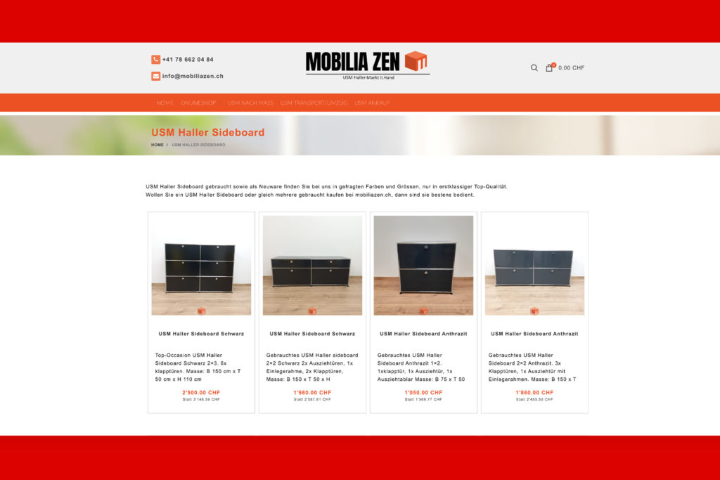 Conception & Création du site E-commerce de Mobilia Zen en Allemand.